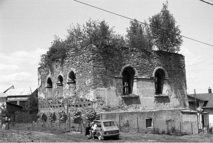 Gdyby nie pan Stefański, światły konserwator zabytków z Sanoka, synagoga już by nie istniała. A tak pozostała przez kilkadziesiąt lat straszącą oko ruiną – przewodnik opowiadał o tym, gdy byłem tam po raz pierwszy na jesieni 2006 roku. Drzew rosnących na szczycie synagogi już nie widziałem, bo zostały usunięte rok wcześniej. Wtedy dobudowano też górną warstwę murów, położono dach i posadzkę, wstawiono okna i drzwi.